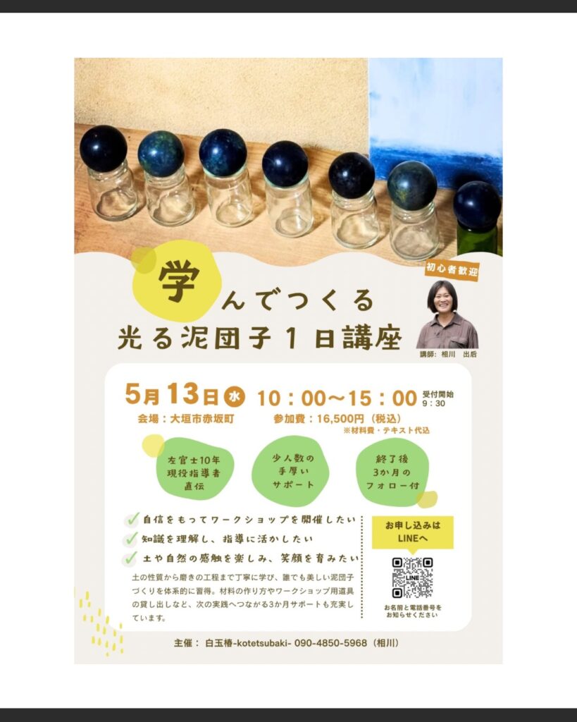 初心者でも愛らしい泥団子がつくれます。体験するだけでなく、自分でまた作れるように、そしてワークショップを開催したい方や、指導に活かしたい方に向けた内容にもなっています。少人数で手厚くサポート、終了後3か月のフォロー付き。